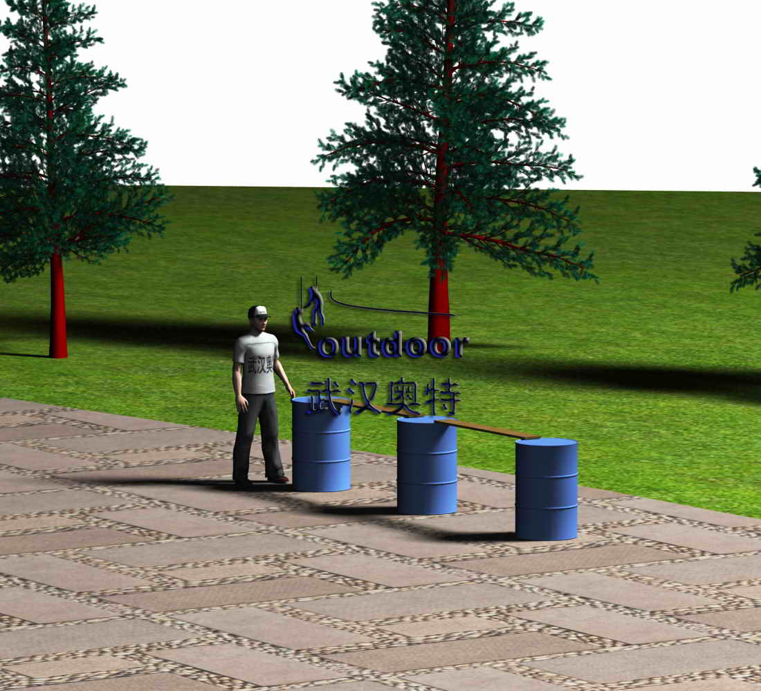 1、利用3只桶和2塊窄板,所有隊(duì)員站在桶和板上,移動(dòng)20米的距離。