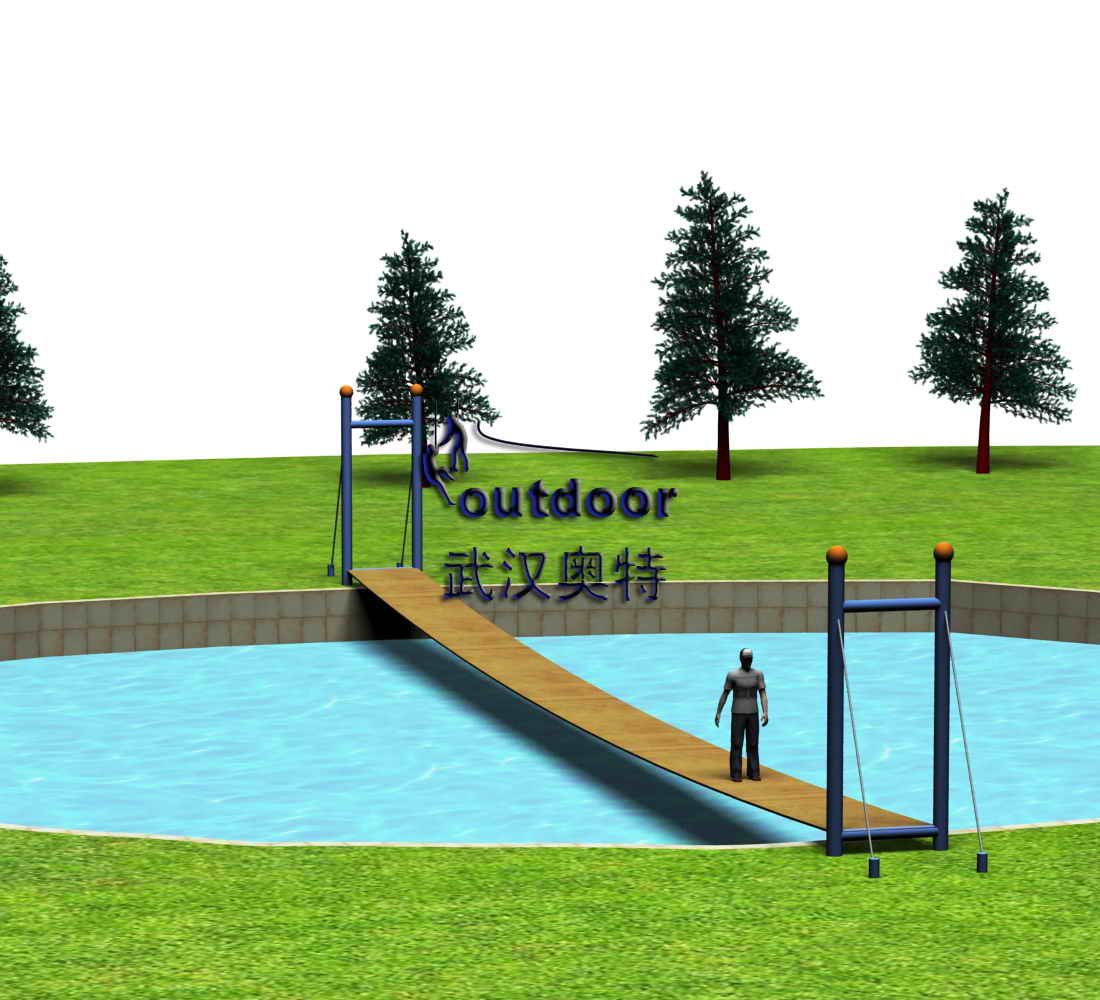 拓展設(shè)施產(chǎn)品介紹:參與者站立于整體晃動的木板橋面,體驗水面漂浮的感覺吧。