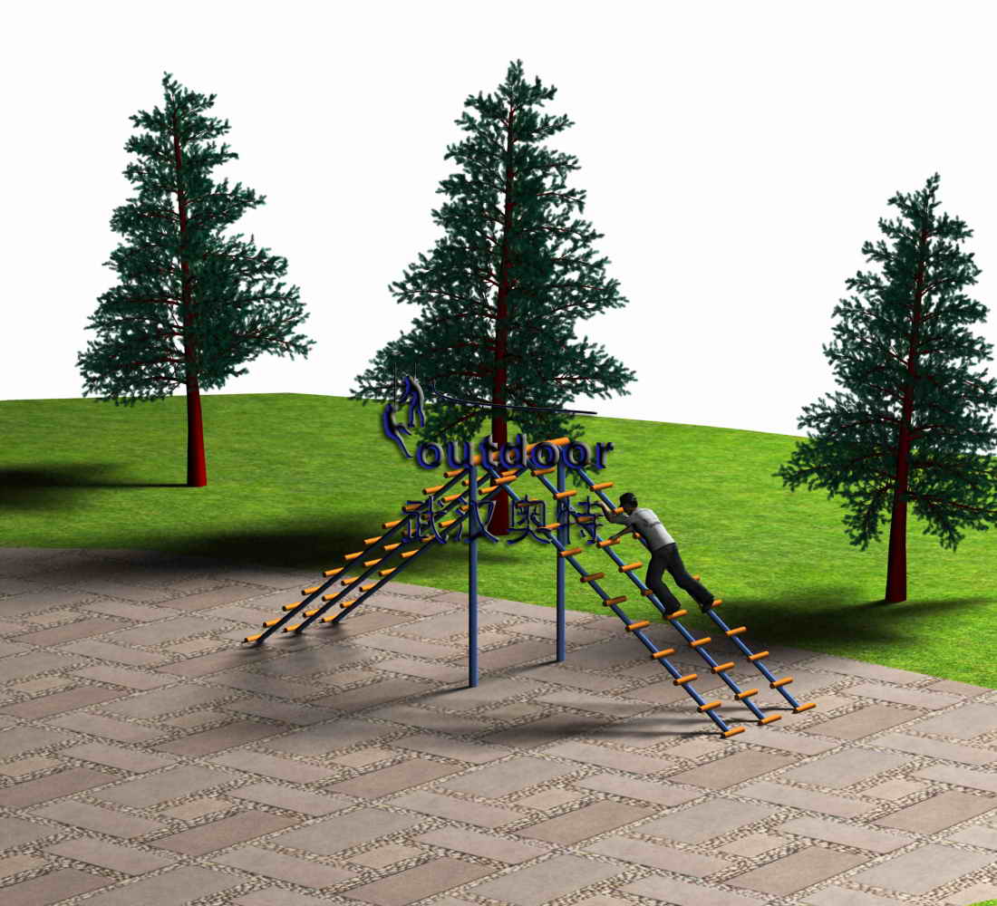 拓展設(shè)施產(chǎn)品介紹:三道鋼架云梯,體能與技巧的結(jié)合,需要翻越。