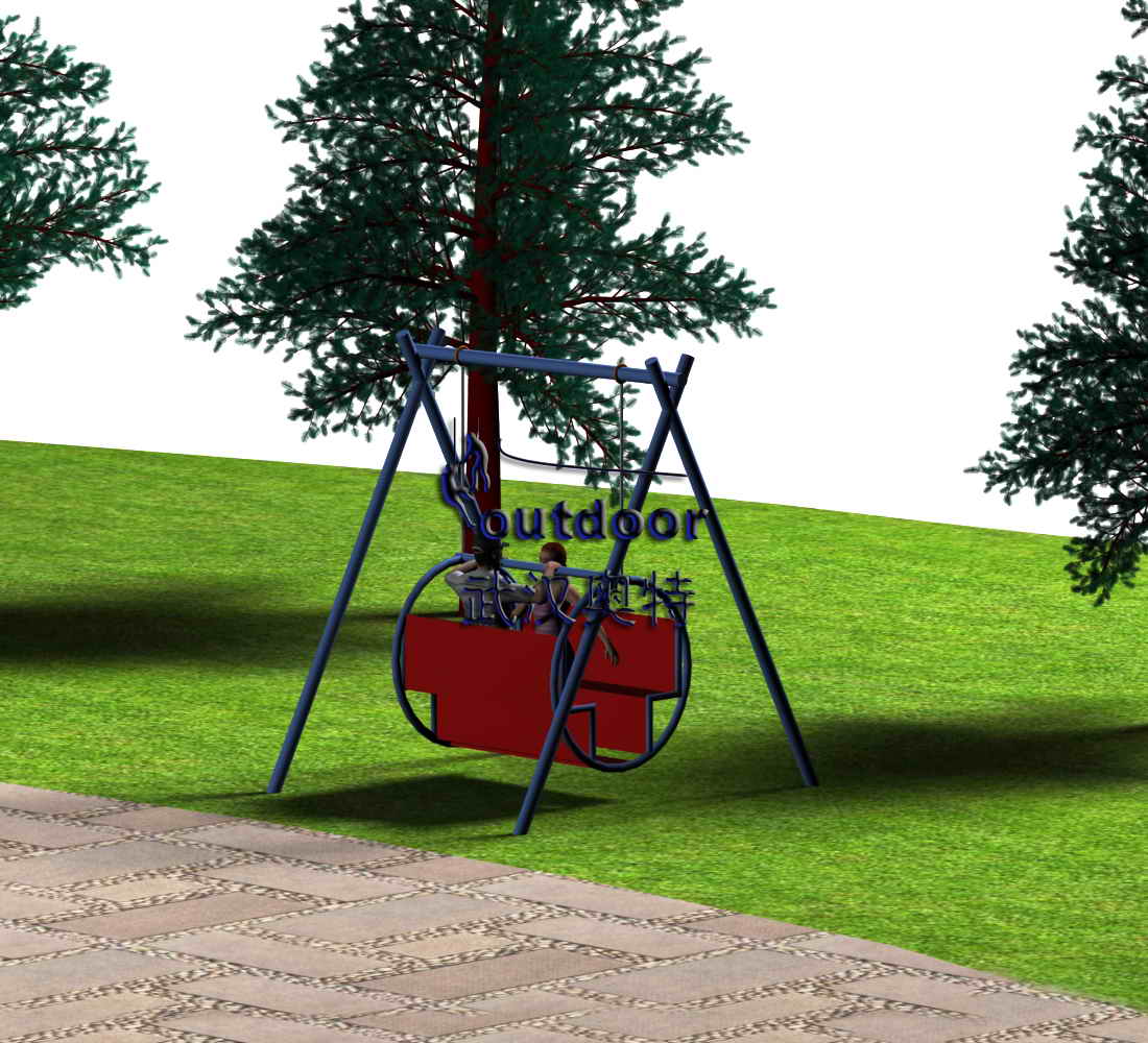 拓展設(shè)施產(chǎn)品介紹:一張面對(duì)面懸掛的木椅,多人或單人體驗(yàn)。