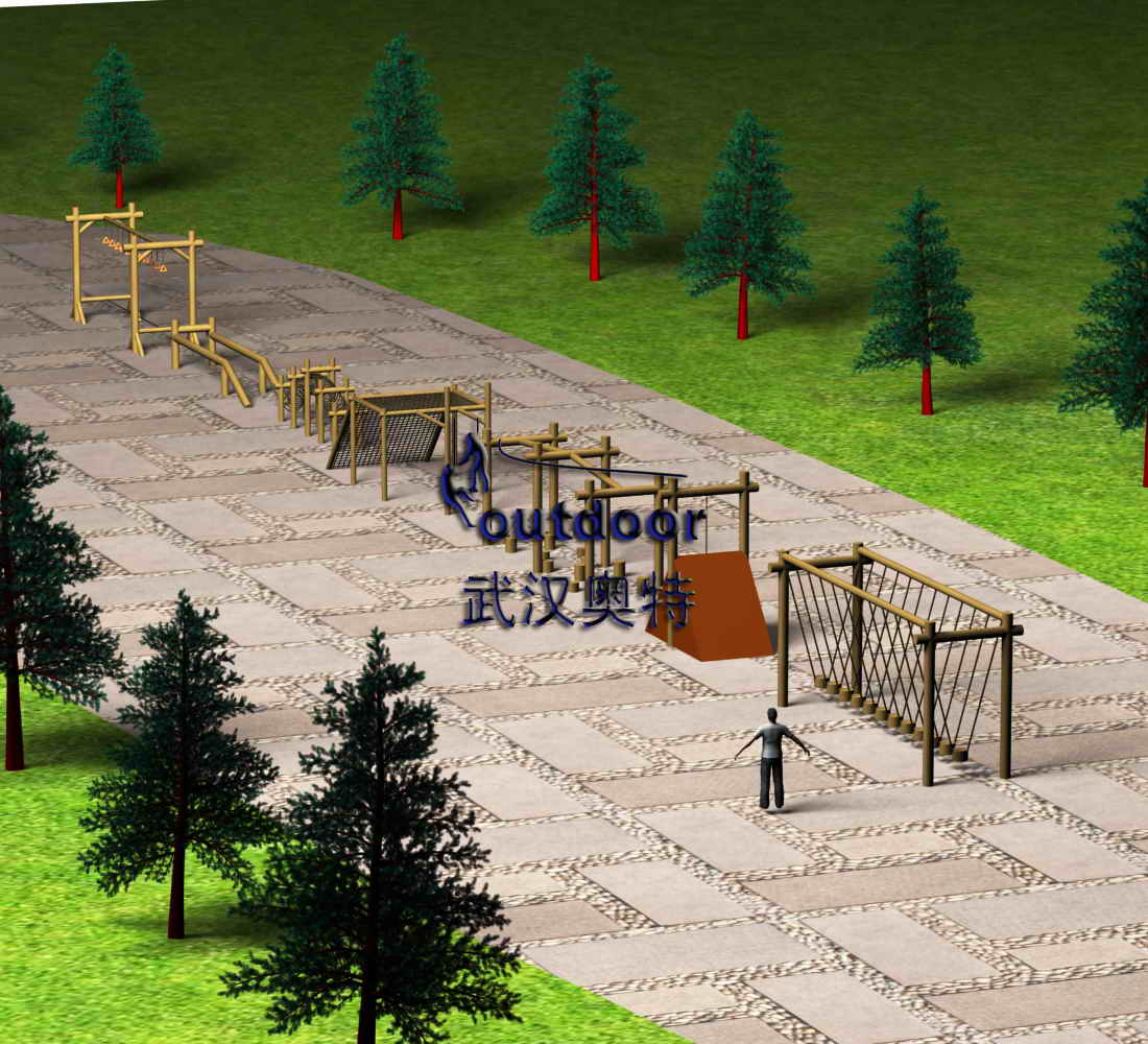 拓展設(shè)施主要材料:國(guó)標(biāo)鋼管、鋼芯鋼纜、防腐木、連接件