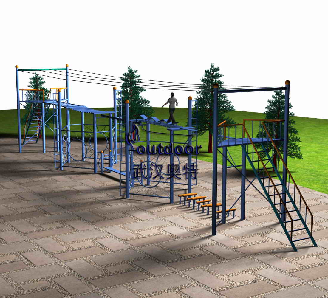 A、橫渡天梯 操作:操作者可選擇手抓橫桿,完全靠手臂的力量帶動身體前進,也可選擇從平躺的梯子上面攀爬通過。 功能:1、使操作者學會控制心態(tài),保持持續(xù)穩(wěn)定的情緒。 2、鍛煉操作者不畏艱辛,挖掘潛力、挑戰(zhàn)意志力的能力。 3、鍛煉手臂力量和平衡能力。 B、乘風破浪 操作:操作者從翹板橋的一端出發(fā),經(jīng)過橋面上的翹翹板,到達另一端。 功能:1、提高在高壓下解決問題的能力。 2、提高對自身的控制能力。 3、提高身體協(xié)調能力。 C、高空獨木 操作:操作者準備好后迅速從獨木的一端穿越至另一端。 功能:1、增強心理穩(wěn)定性。 2、培養(yǎng)自我挑戰(zhàn)的勇氣和膽量。 3、培養(yǎng)敏捷的反應能力和身體控制能力。 4、提高平衡能力和協(xié)調能力。 D、瀘定橋 操作:操作者從橋的一端出發(fā),迅速通過瀘定橋到達另一端,在通過時伸開雙臂,可幫助保持身體的平衡。 功能:1、使操作者學會控制心態(tài),保持持續(xù)穩(wěn)定的情緒。 2、鍛煉操作者不畏艱辛,挖掘潛力、挑戰(zhàn)意志力的能力。 E、高空斷橋 操作:操作者目視前方,從斷橋的一側助跑,借助后蹬力起跳,躍過斷開部分,落到斷橋另一側。 功能:1、培養(yǎng)個體不怕困難,不畏艱險的精神。 2、增強個體的膽量,培養(yǎng)克服恐懼的勇氣。 3、培養(yǎng)自我挑戰(zhàn)、突破自我的精神和能力。 4、開發(fā)個人潛能。 5、鍛煉彈跳力。固定兩段鋼板,中間留約成年人一大步的距離。 F、齊心協(xié)力 操作:兩名操作者分別站在兩根鋼絲上,面對面,雙手與對面的隊員相握,保持平衡,依靠對方的力量支持從鋼絲的一端走到另一端 功能:1、培養(yǎng)合作精神和協(xié)調能力,建立相互協(xié)作的、和諧的人際關系。 2、增強對共同解決問題時團隊成員步調的一致性的認識。 3、樹立正確的自我觀念。 4、培養(yǎng)個體敏捷的反應能力和身體控制能力。 G、鉆網(wǎng) 操作:操作者從五角星形狀的孔內進出、追逐。 功能:1、鍛煉攀爬能力和四肢協(xié)調能力 2、增加活動樂趣。 H、禮讓通行 操作:全體成員隨機站上晃板,在規(guī)定的時間里、并且在不能有人掉到地面上的前提下完成任務。 功能:1、訓練團隊在短時間里建立統(tǒng)一指令、達成一致行為。 2、培養(yǎng)良好的人際關系與互動狀態(tài)。 3、體驗領導的作用和對集體的影響。 4、學習在條件限制與手忙腳亂的情景下進行良好溝通的方法。 5、理清角色與分工,合理分配與運用資源。 6、增強個體的手臂、腰部、腿部力量、身體協(xié)調能力與平衡力。 I、鉆網(wǎng) 操作:操作者從五角星形狀的孔內進出、追逐。 功能:1、鍛煉攀爬能力和四肢協(xié)調能力。 2、增加活動樂趣。 J、攜手并進 操作:兩人一組,從器材的一端出發(fā),不斷變換身體姿勢,有創(chuàng)造性地、靈活、及時地選擇落腳點,并保持兩人步調的一致性。 功能:1、增強協(xié)作意識和協(xié)調解決問題能力,培養(yǎng)團隊成員步調一致性。 2、重塑正確的自我觀念。 3、培養(yǎng)創(chuàng)造性思維和在解決問題過程中及時調整策略和方法的能力。 4、培養(yǎng)耐心細致解決問題的能力。 5、鍛煉手眼協(xié)調能力和快速反應能力。 |